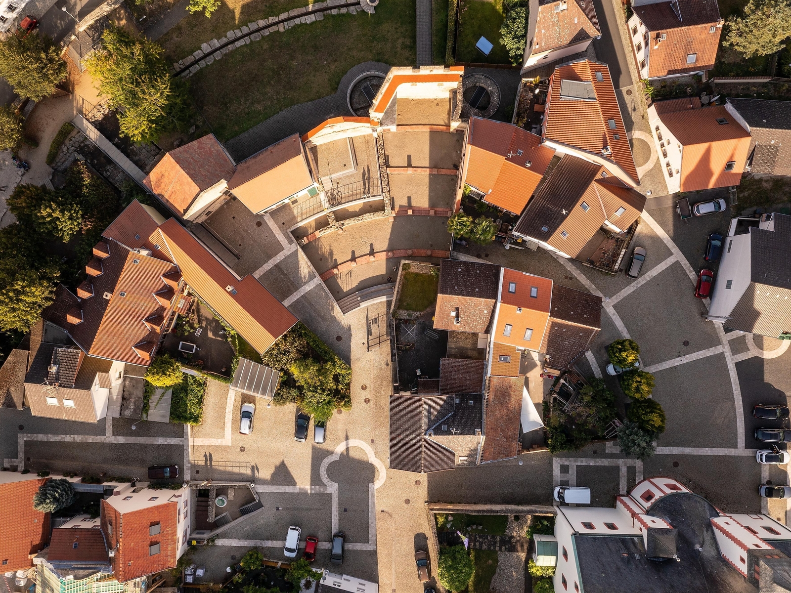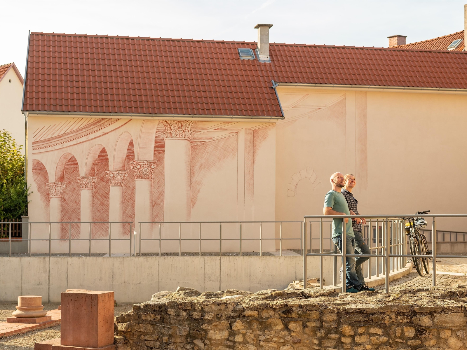 The imperial palace served a further 17 kings and emperors as a temporary seat of government. In the archaeological zone, which today extends over an entire residential area, impressive ruins still bear witness to the splendour of the former monumental building. The foundations of the rest of the complex lie underground, but are well known thanks to intensive archaeological research and have been made visible as markings in the modern pavement. In this way, the former extent of the entire complex can be impressively experienced. The imperial palace in Ingelheim is characterised by its unique layout for the early Middle Ages, which incorporates elements of Roman-antique villa and palace architecture. Charlemagne saw himself as a successor to the Roman emperors, and everyone who visited him in his palace should know this if possible.