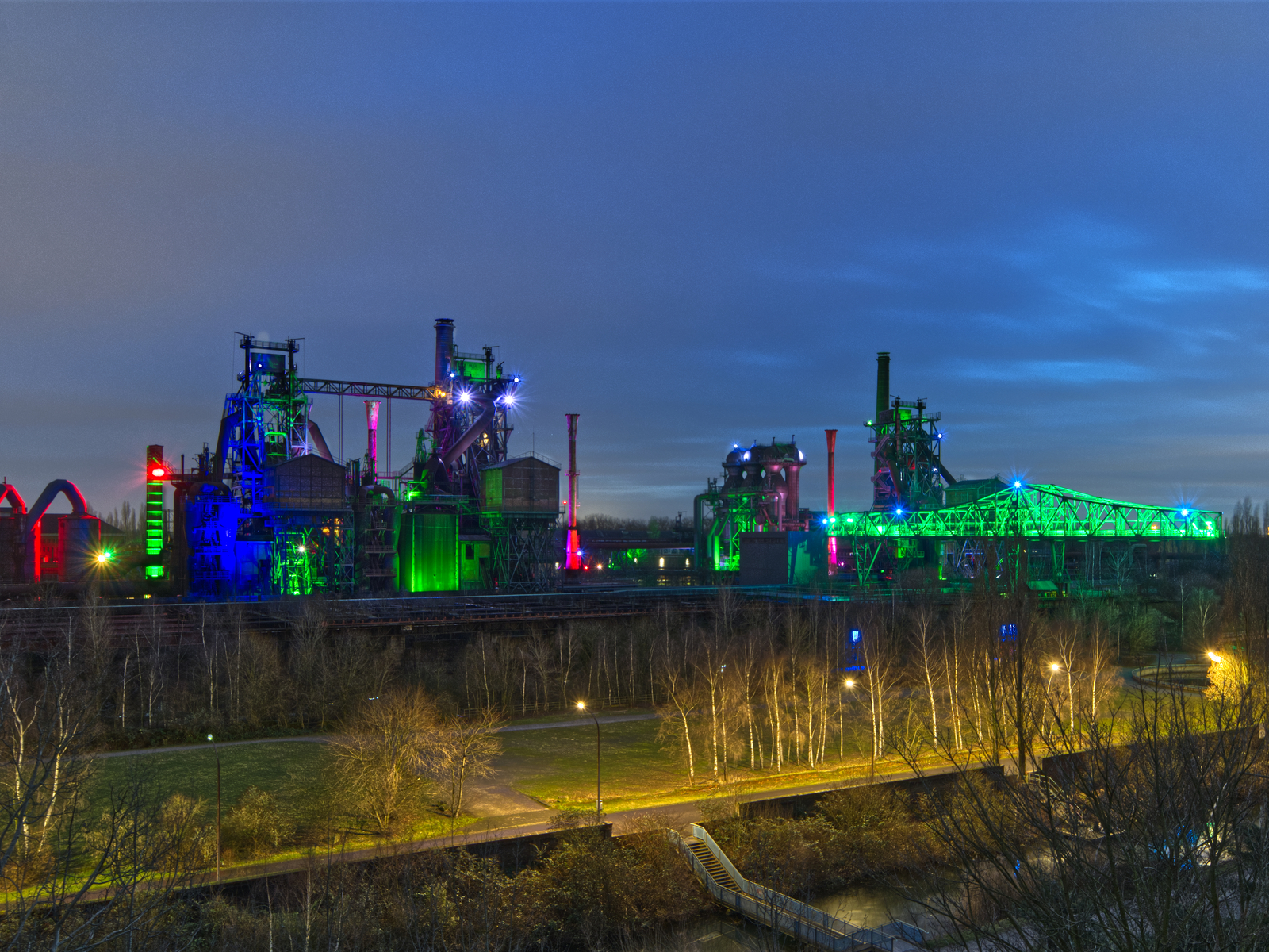 Gäste können allein auf Entdeckungstour gehen oder das Gelände bei einer Hütten- oder Fackelführung erkunden. In einem alten Gasometer entstand Europas größtes künstliches Tauchsportzentrum, in Erzlagerbunkern wurden alpine Klettergärten geschaffen, eine Gießhalle wurde zum Hochseilparcours und ein erloschener Hochofen wurde zum Aussichtsturm ausgebaut. Das Highlight erstrahlt abends: Dann taucht eine Lichtinstallation das Denkmal in Licht und Farbe. Das Beste ist: Der Park ist rund um die Uhr geöffnet. Der Eintritt ist frei.