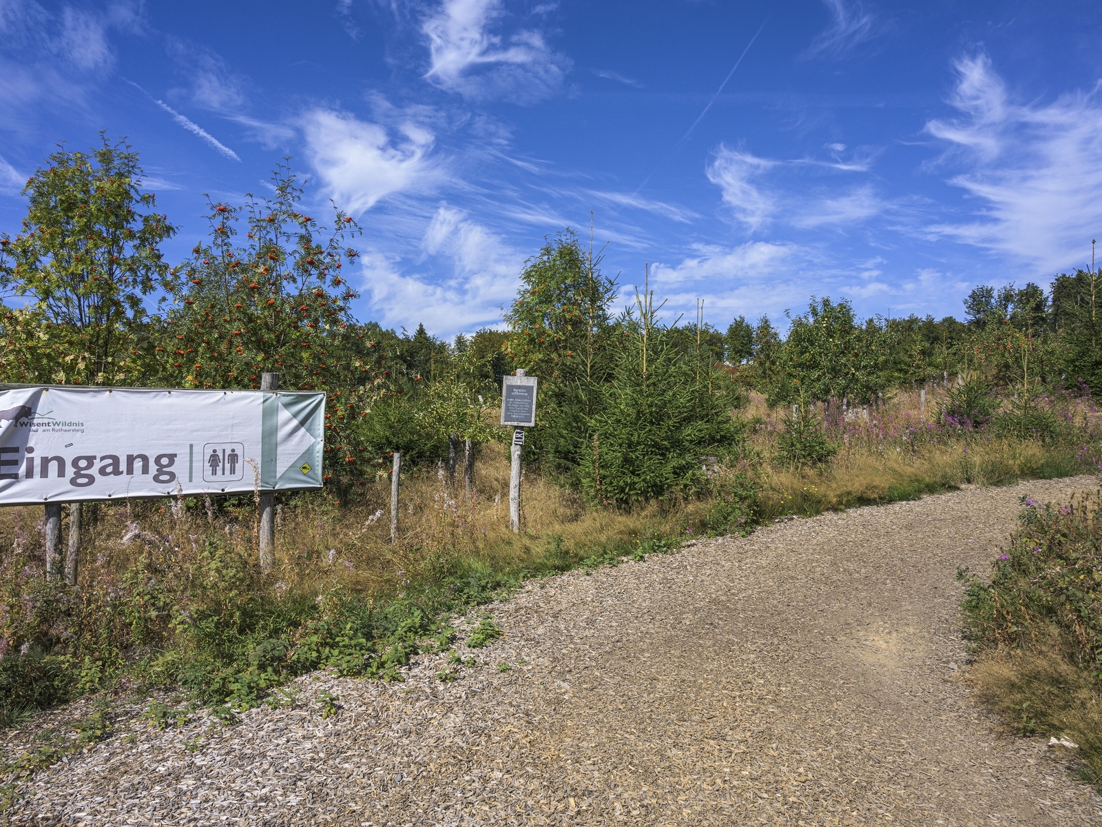 Dort bist du allerdings äußerst selten und allenfalls durch Zufall anzutreffen. Deswegen wurde die „Wisent-Wildnis“ als „Guckloch“ in das Artenschutzprojekt geschaffen. In einem 20 Hektar großen und weitgehend naturbelassenen Areal lebt eine zweite Wisent-Gruppe – ein außergewöhnliches Tiererlebnis und ein besonderer Naturgenuss für die ganze Familie. Mit Formationen aus Felsen, Bach, Quellmulden, Wald und Tal bietet die "Wisent-Wildnis" Wandergenuss, Familienausflug und Tierbeobachtung auf einen Schlag. Eine Bachüberquerung und ein riesiger Dachsbau entführen die Besucher in die Welt der Natur.