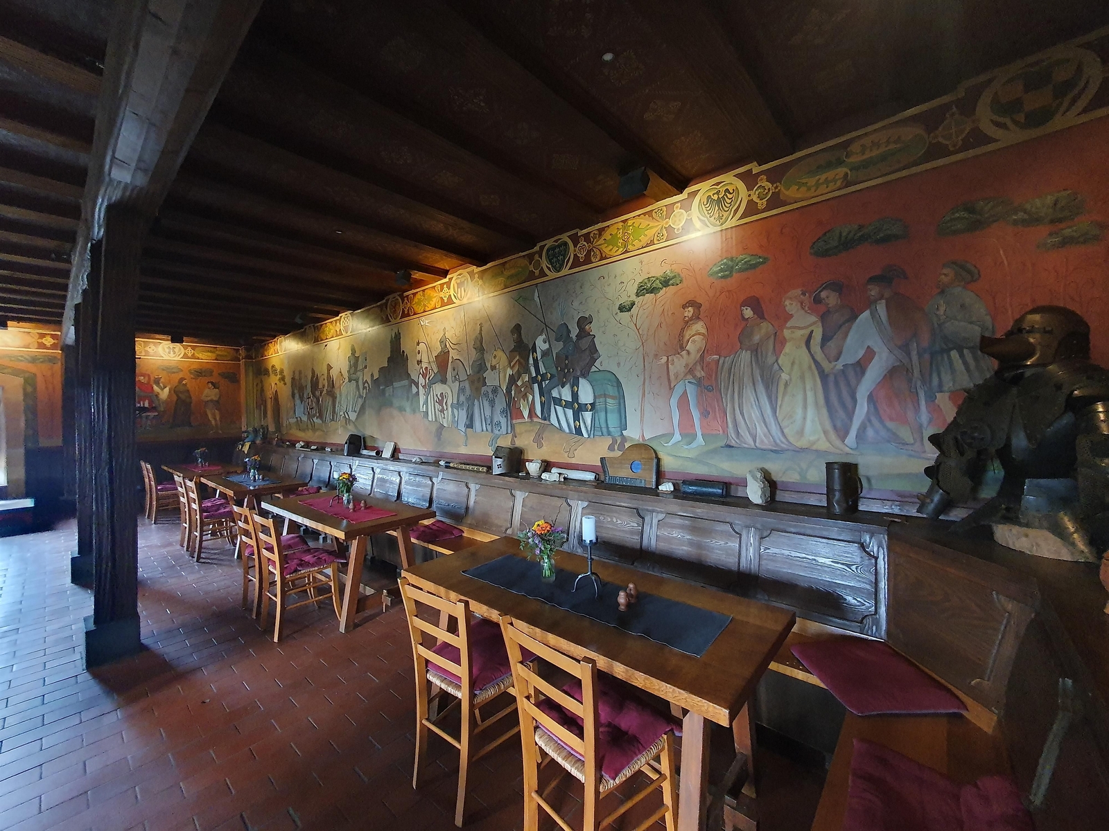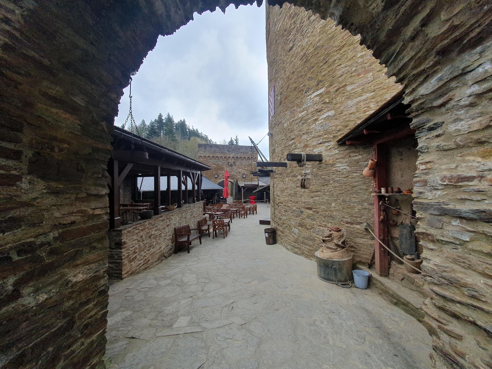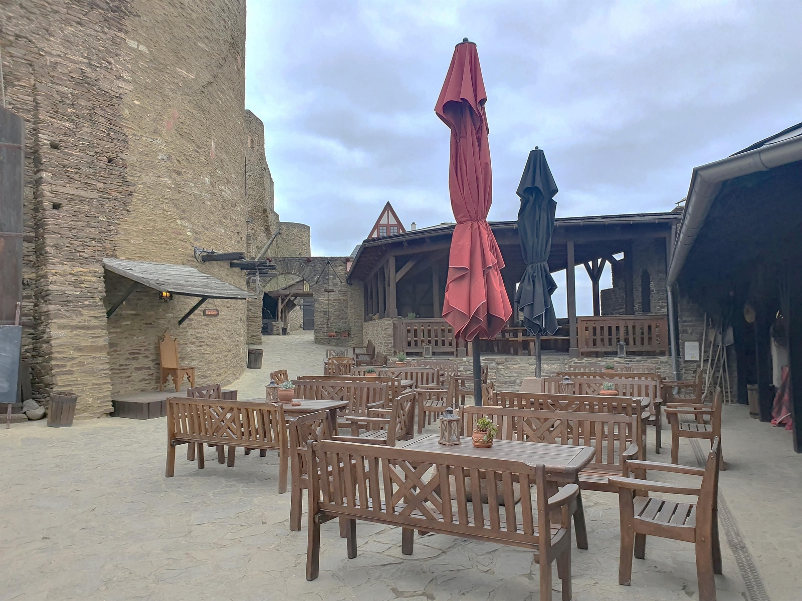 Die Burggastronomie ist ab 12 Uhr geöffnet: Zum Erlebnis Ehrenburg servieren die Mägde kühle und heiße Getränke, der Küchenmeister bereitet täglich Leckeres in Herzhaft und Süß.